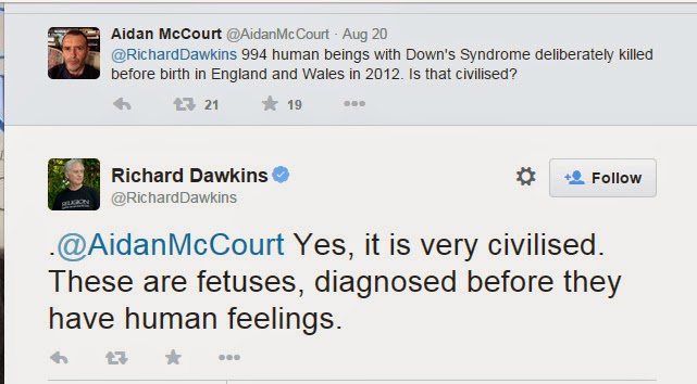 The Bible is clear about shedding innocent blood. But notice what this atheist said, as written by a reporter from BBC News Ouch, dated August 21, 2014. It appears that Dawkins was advising a young woman in Twitter who posed a hypothetical situation when her baby might be born with Down syndrome. What would she do?