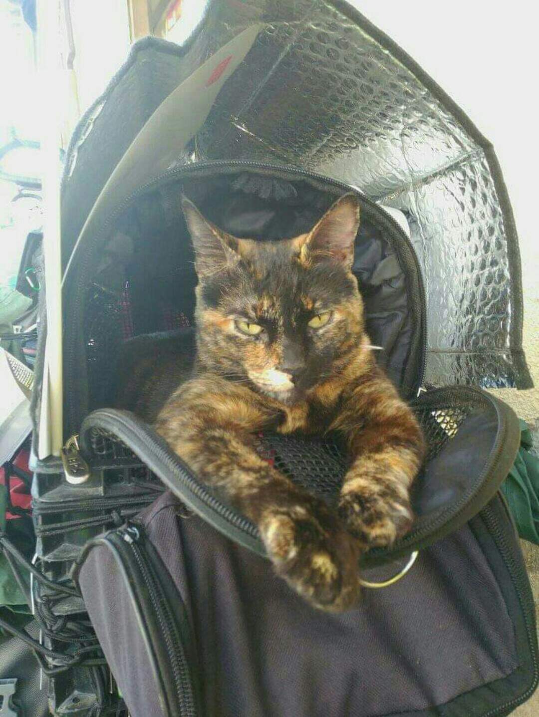 Viajar con un animal en la bicicleta es algo más habitual de lo que pueda parecer, aunque en nuestra sociedad tenemos la mentalidad de que para hacer eso, el animal a escoger debe ser un perro ya que supuestamente a los gatos no les gusta y no se adaptarían, cosa que el perro si.