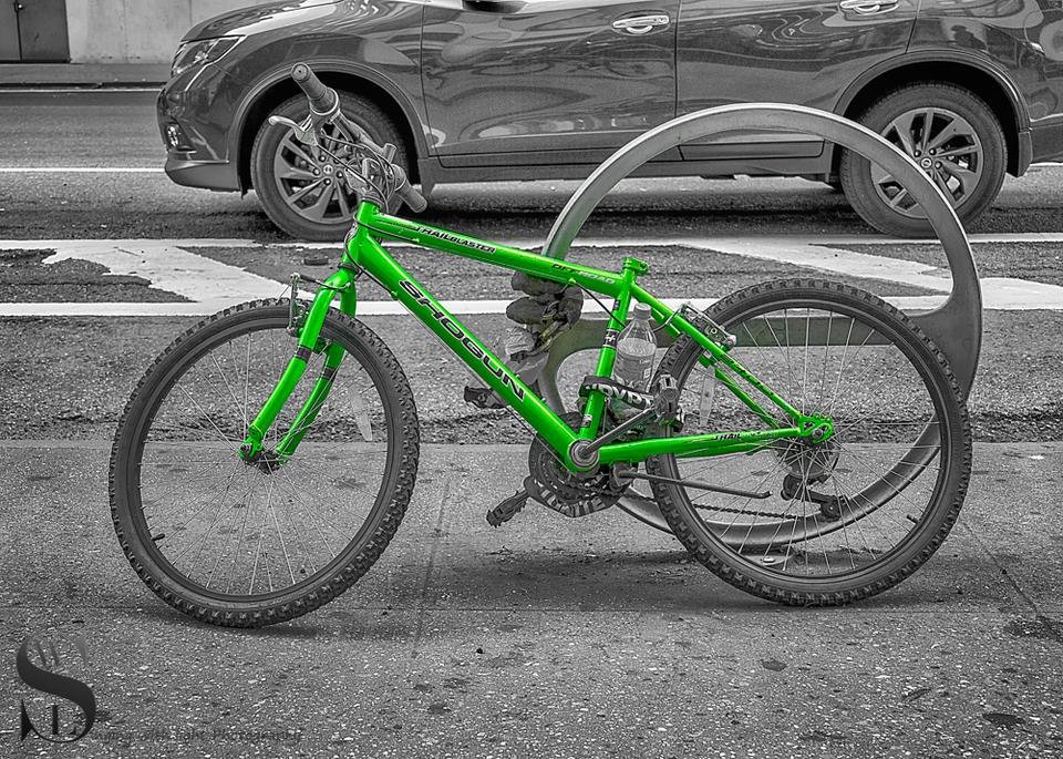 I really like the use of selective color, and he has some other nice shots of bikes on the streets of NYC in his post.