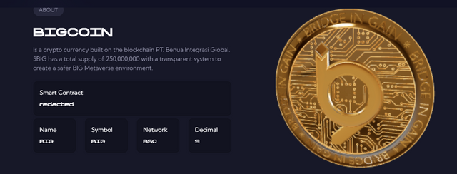 This is the native currency of BIG ecosystem . It has a total supply of 250,000,000 BIG . It can be use for participating in games and various activities in the ecosystem . $BIG coin is developed on Binance Smart Chain , this will allow ease of transaction , low transaction fee as well as high transaction speed.