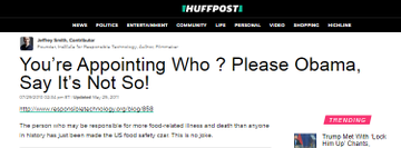 Might have something to do with Obama appointing Monsanto's Ex-VP as head of the FDA