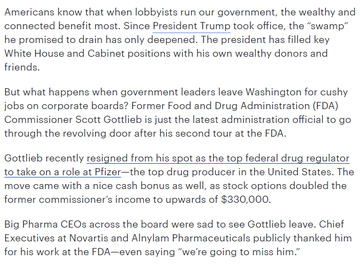 This, of course, incentivizes the men and women of the FDA to make sure to keep big pharma and big agriculture happy, as to not jeopardize their cushy future jobs.