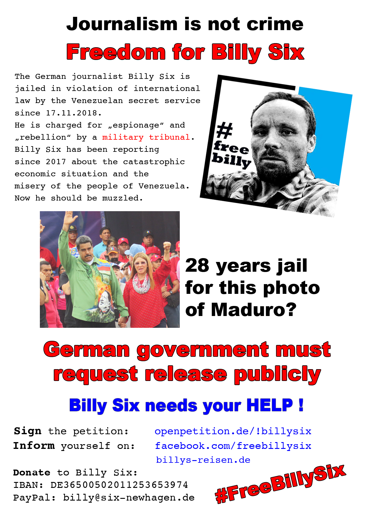 Make #freebillysix viral internationally so we can get Billy Six free and internationally face the fact that germans government is a totalitarian regime that just cares about anti-german "journalists".