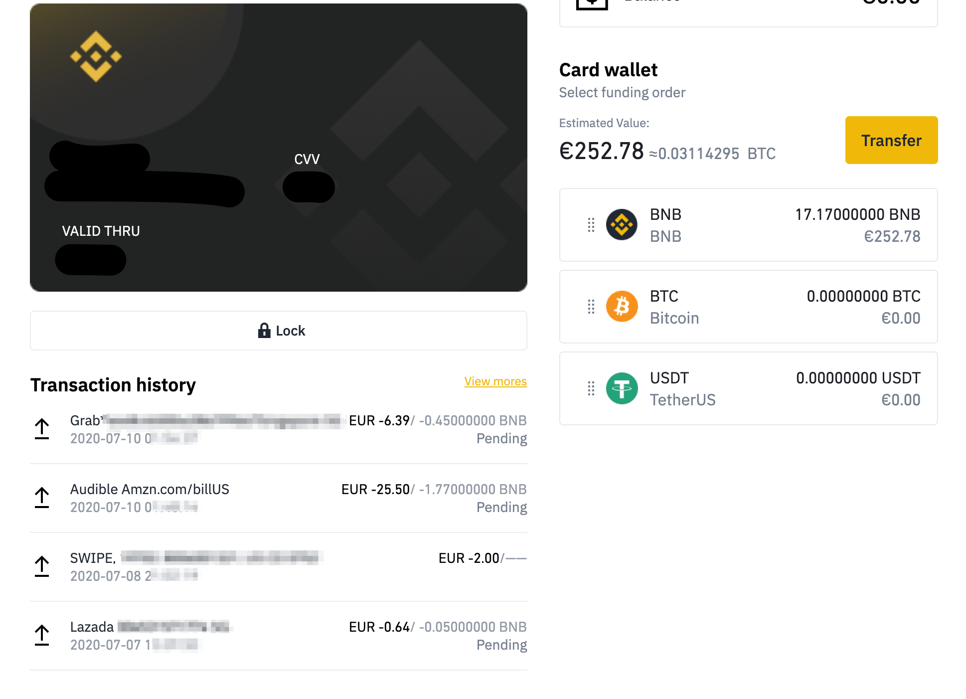 I am so excited. I love beta testing products...brazero (34)in #binance • 6 years ago All real transactions. Audible/Amzn, Grab (Uber replacement), Lazada (Amzn replacement). Merchants accepts fiat, I paid in #BNB, direct from my Binance account. #Binance Card - I think I can finally go from 99% to 100% crypto. #bnb