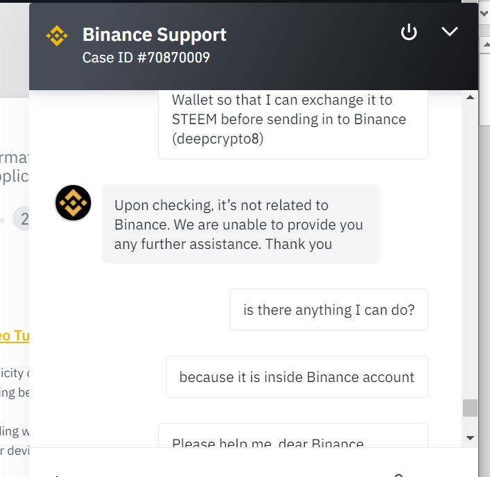 If Binance gets people to use the deepcrypto8 as an address, I do wish they would have been a little be more empathetic towards their customers.