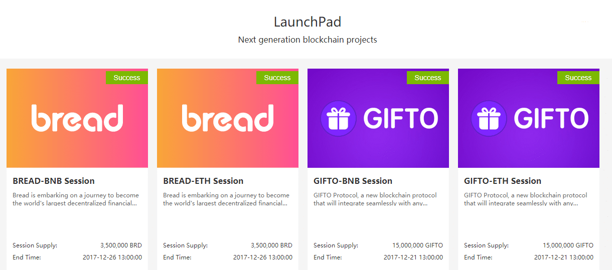 The ICO’s are conducted in sessions for both ETH and BNB (the native Binance Token), and at the time of writing there have been two projects with two sessions each. Visit the LaunchPad to see the performance of past projects, and gain some clarity on how the LaunchPad looks and feels like.