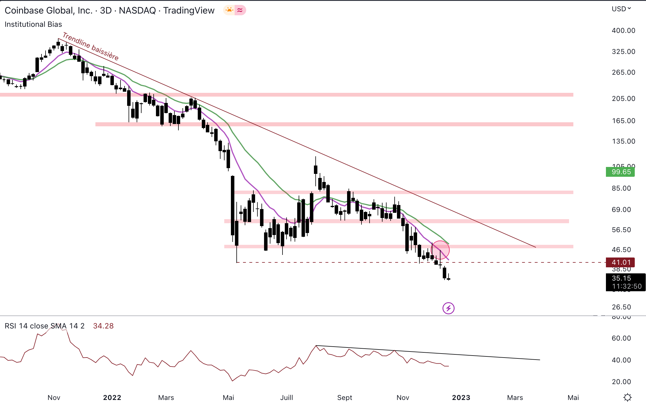 कोईनबेस का कोर्स अच्छा नहीं है। वास्तव में, कोर्स 35 डॉलर से नीचे हुआ है और नई सर्वाधिक निचली हिस्ट्रीकल है: