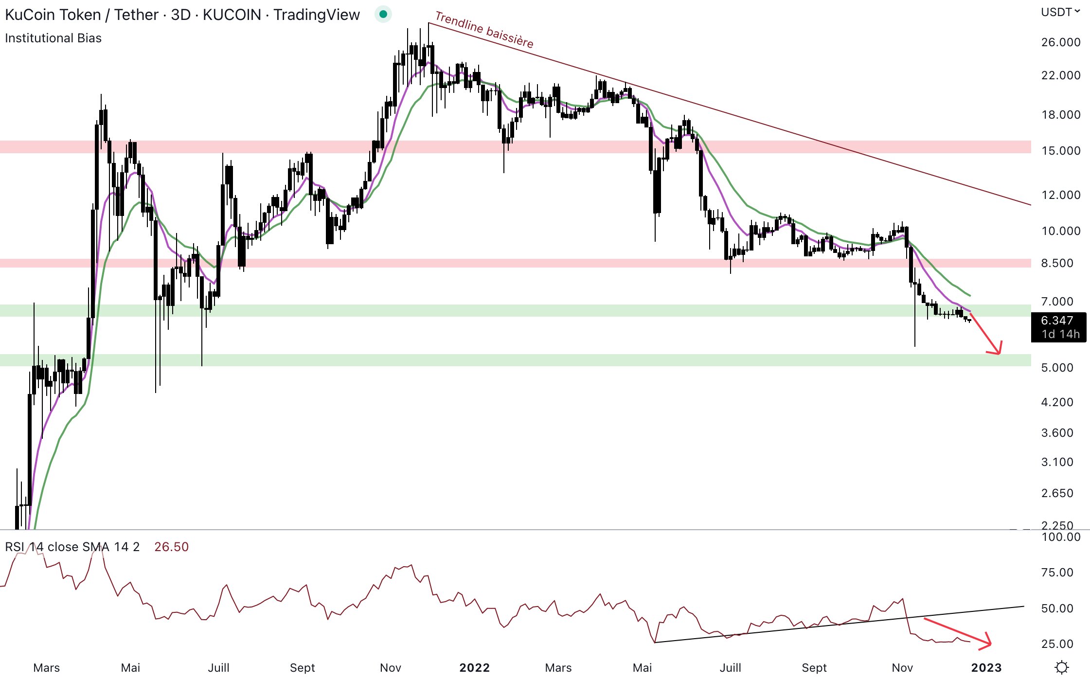 कोर्स तीन दिनों में समय इकाई में मंद तंत्रांत में है। यह एक सपोर्ट पर रीबांड हुआ है, लेकिन वर्तमान में संरचना कठोर है। सबसे संभवतः परिकल्पना EMA स्तर पर रद्द होना है और अगली सपोर्ट पर वापसी होना है। इसके लिए एक तंत्रांत में बदलाव होने के लिए क्रीम और ऊपरी शिखर होने की प्रतीक्षा करनी होगी।