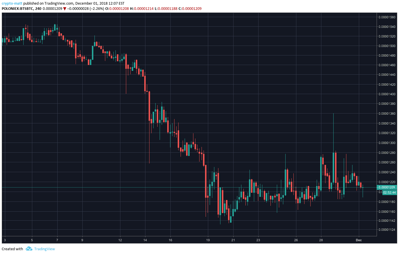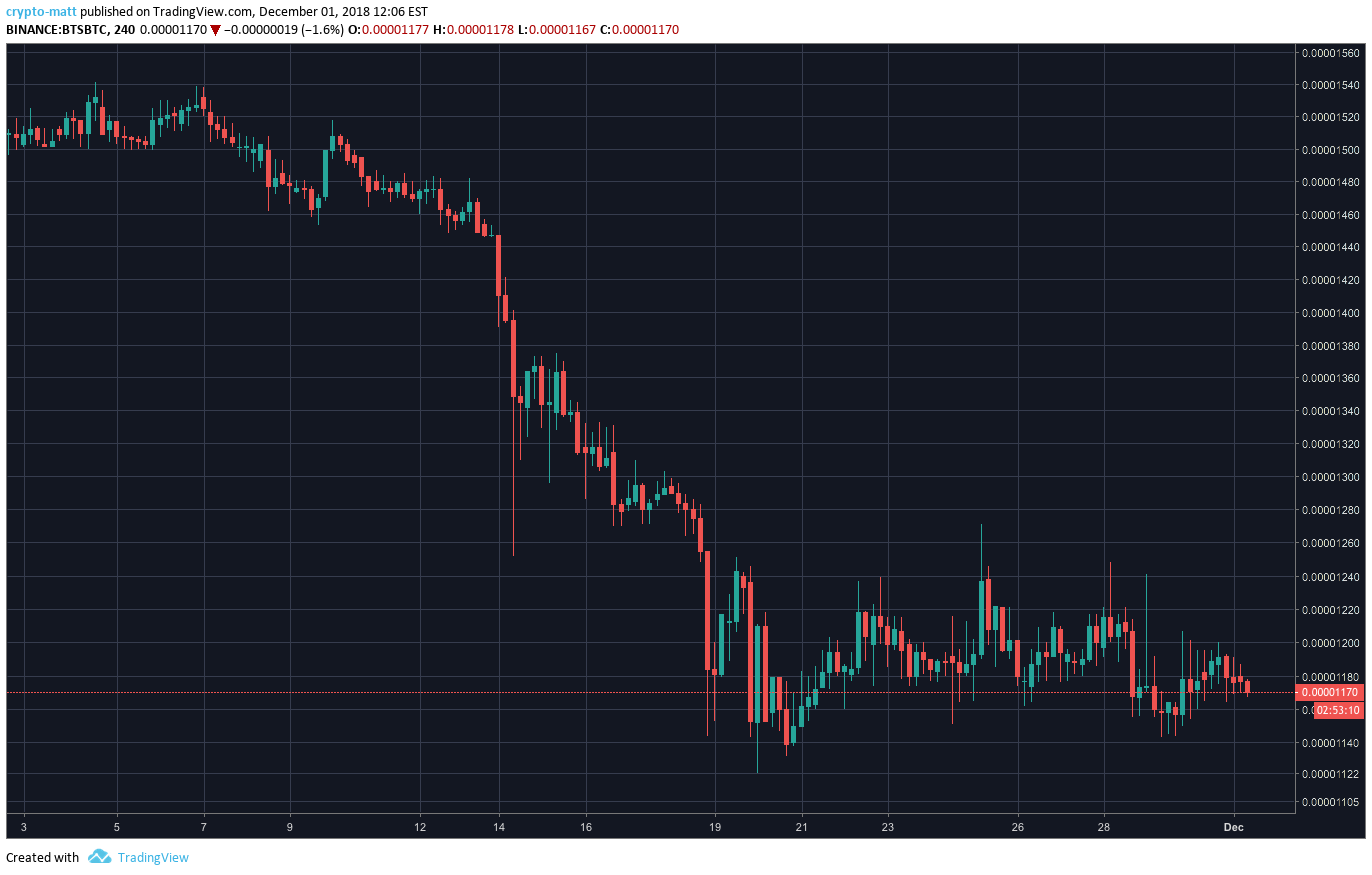 Poloniex is currently quoting 1209 Satoshi and Binance is quoting 1170 Satoshi.