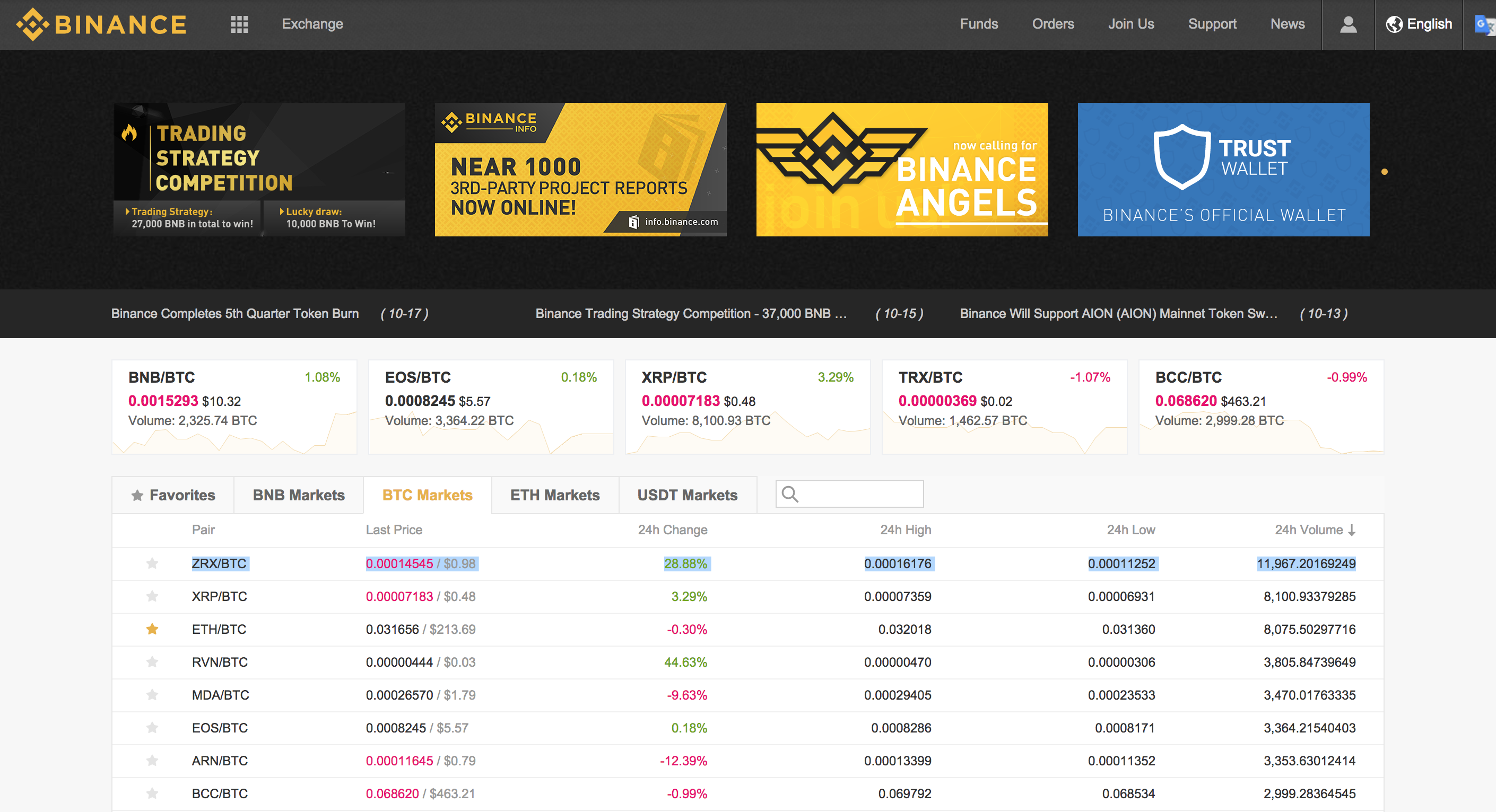 Binance down, BASIC MODE working...portaculture (41)in #binance • 8 years ago (edited)Binance basic mode seems to be working, but you have to access it through the main screen (picture below). Don't press the exchange button on the top. Instead press the pair on the bottom. #hack #bitcoin #zrx #cryptocurrency