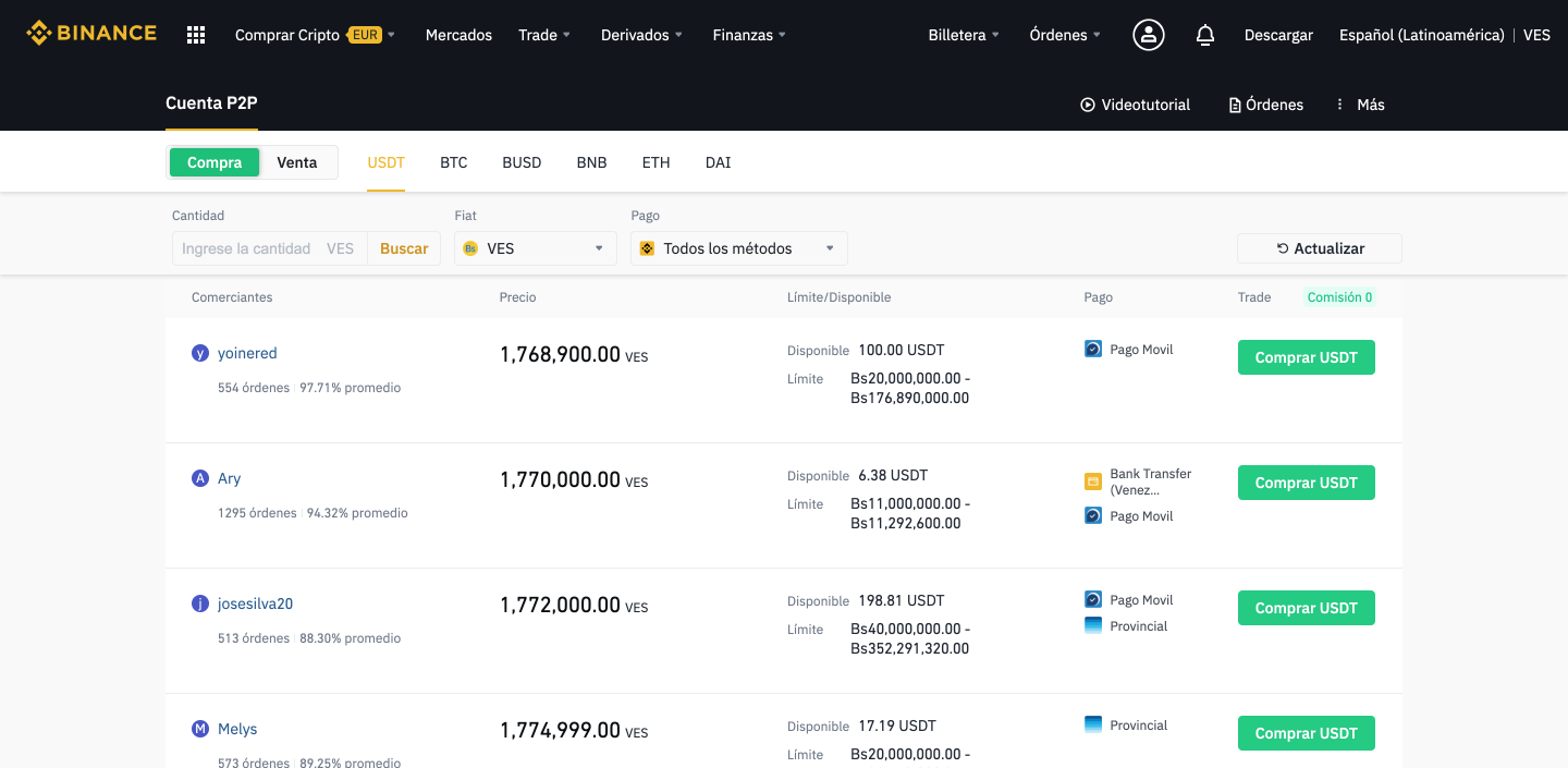 Comprando en Binance vía P2P