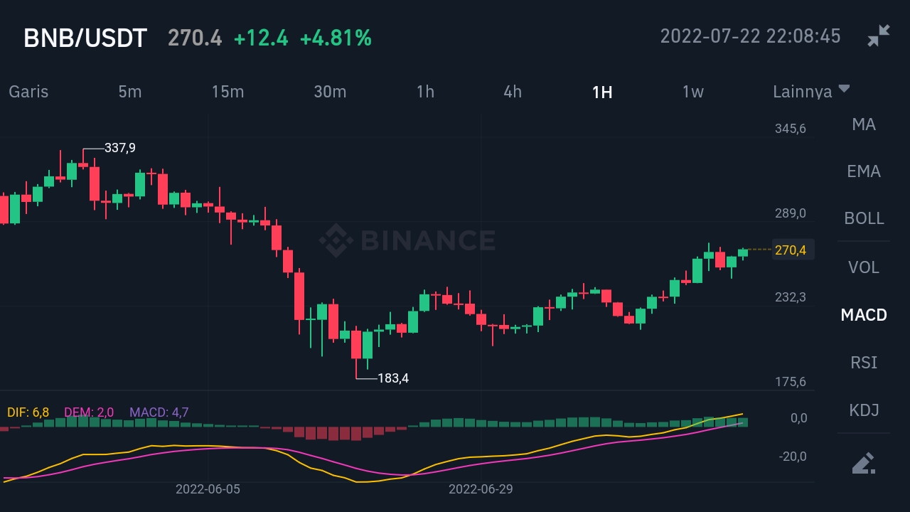 BNB/USDT Price 22/07/2022