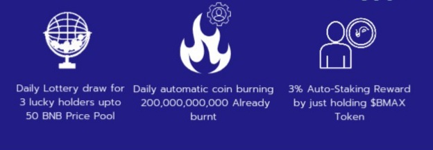 BMax token have self-automated liquidity and auto-burning token with smart reflective staking mechanism, also have automated 5% tax on every transaction . It means you will get more token by just holding $BMAX.