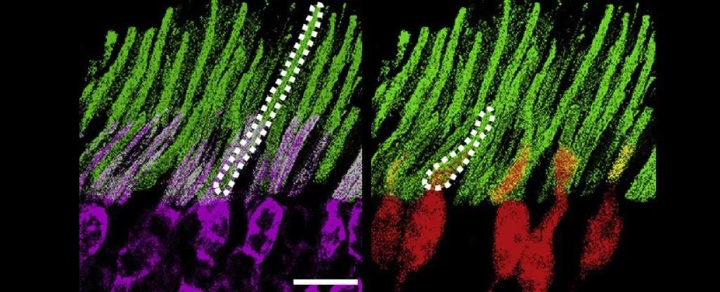 Infrared and ultraviolet light-sensing particles attached to mouse retinal cells