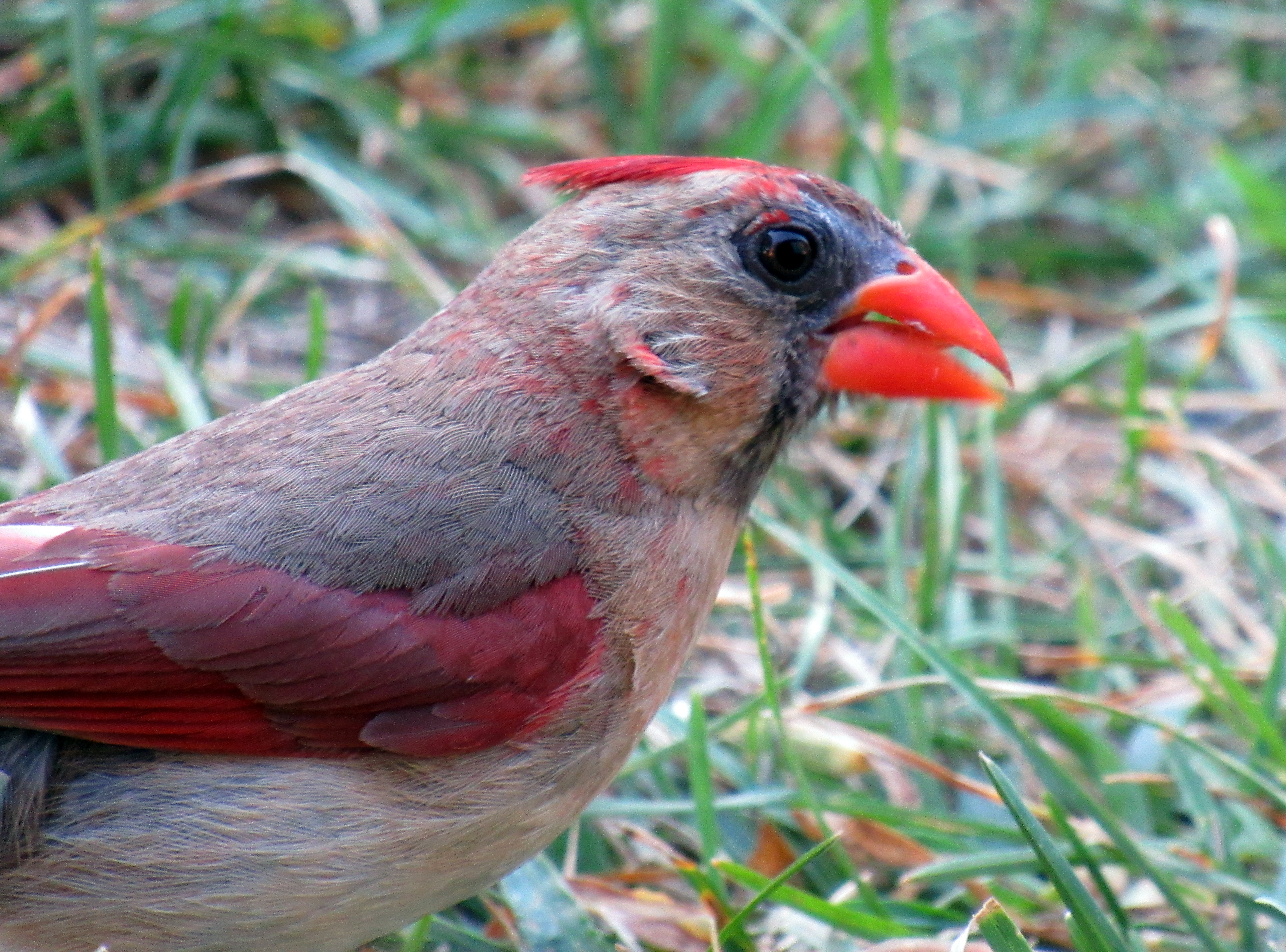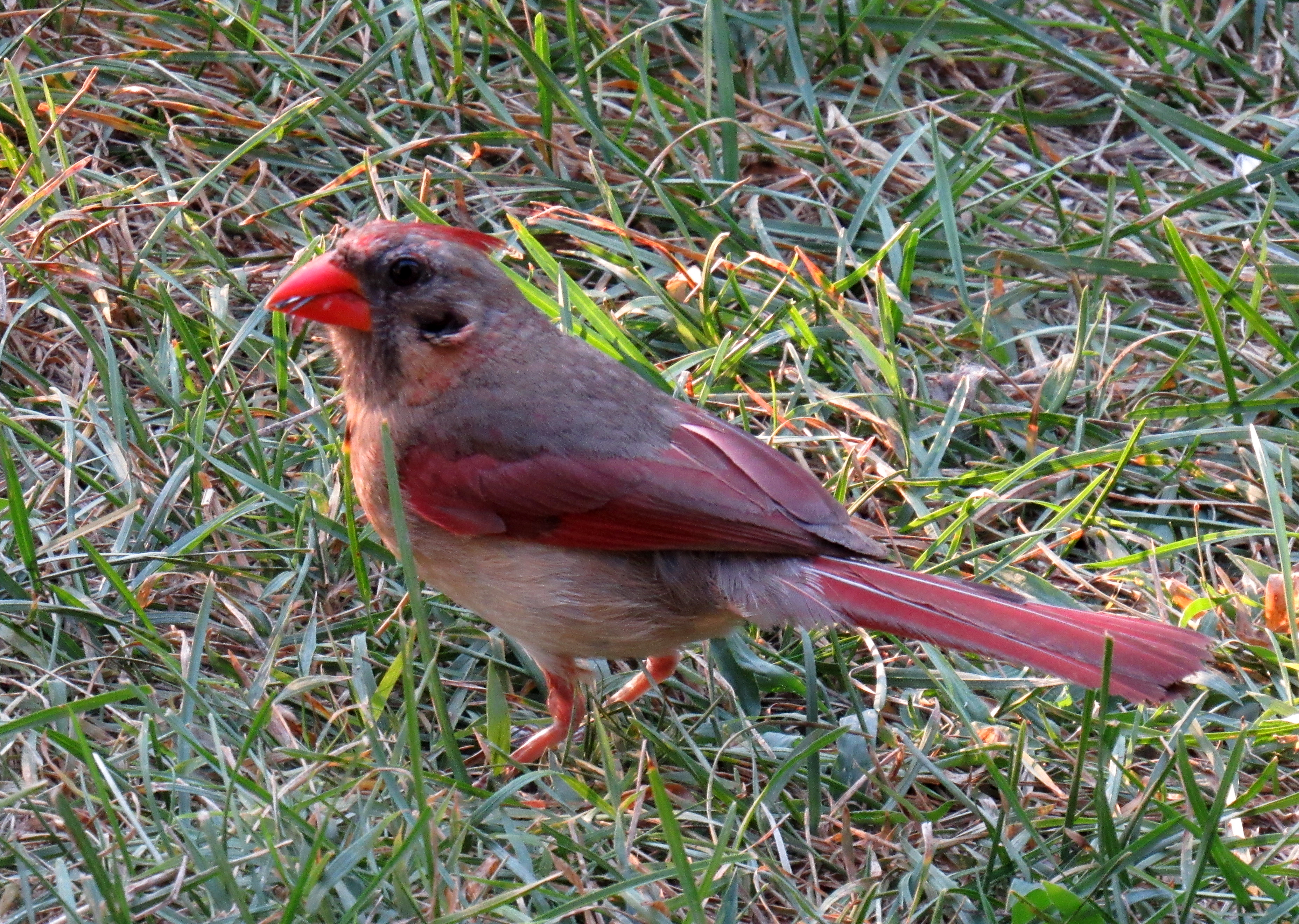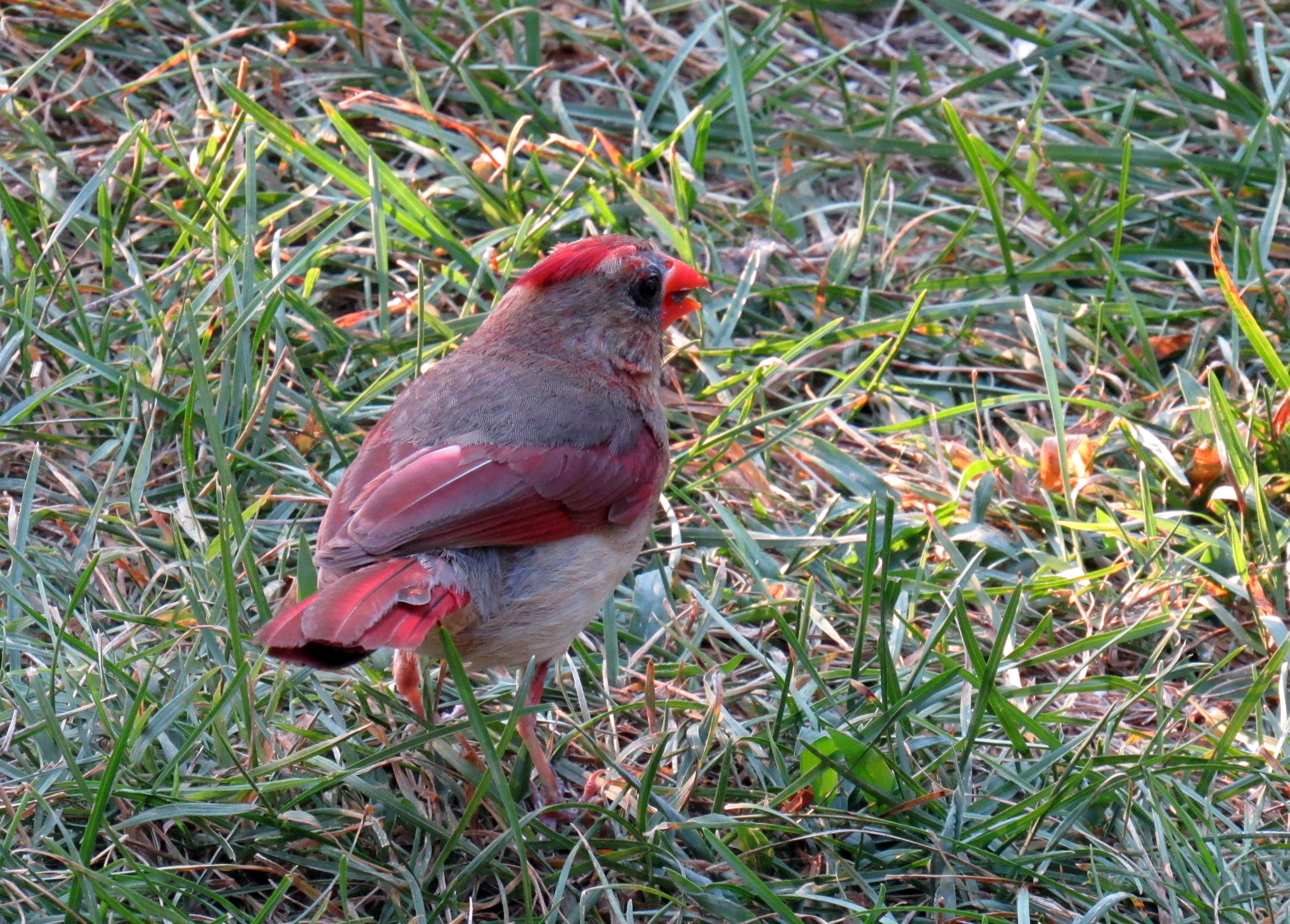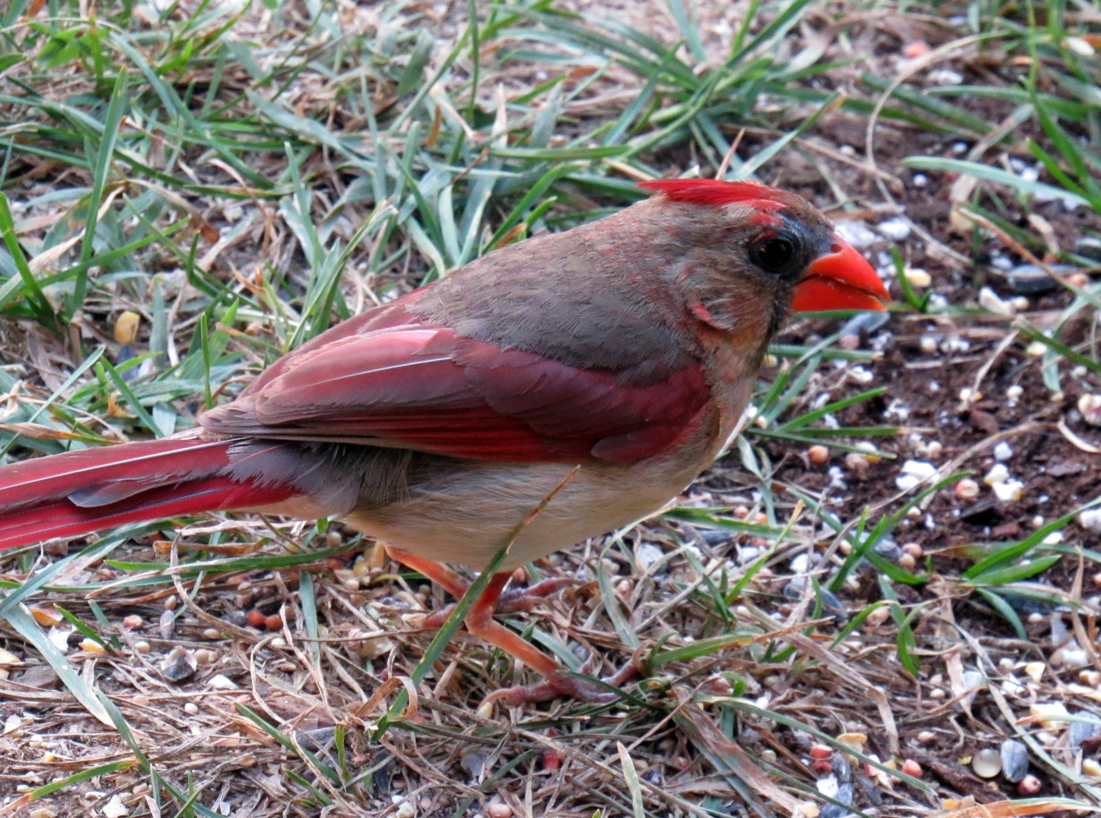 Behold! A magestic female cardinal! The cardinals show up year round and aren't as shy as some species. I can usually tell when they are around from the very distinct chipping sound they make.