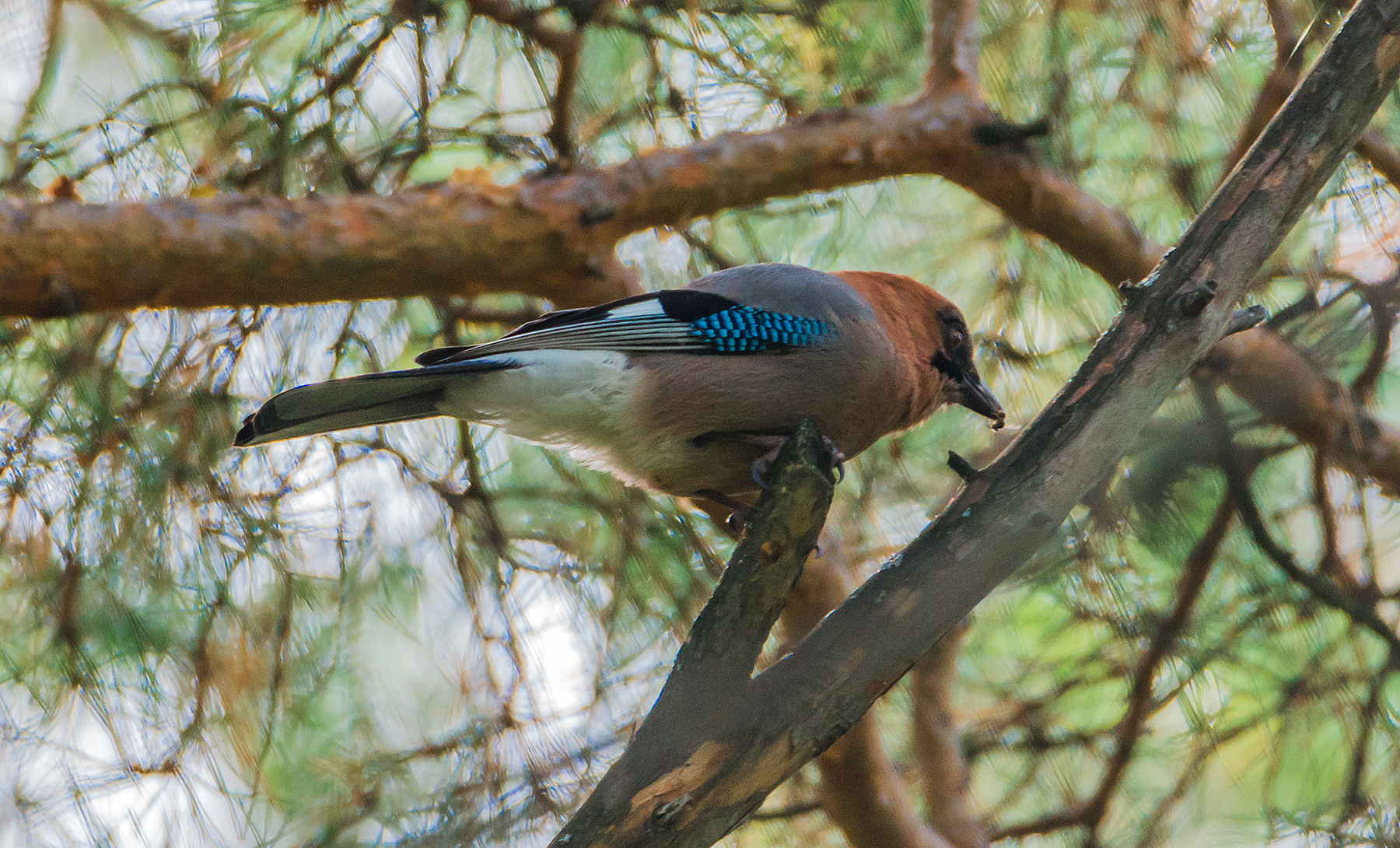 You can mostly hear their signature croaking, but since they are a crow, they can also "speak in other voices." For example, I once heard a jay gurgling like a chicken. And once a jay deceived me by screaming like a black woodpecker, to which I immediately went in the direction of the sound, wanting to take a photo of the woodpecker, but saw this red beauty there.