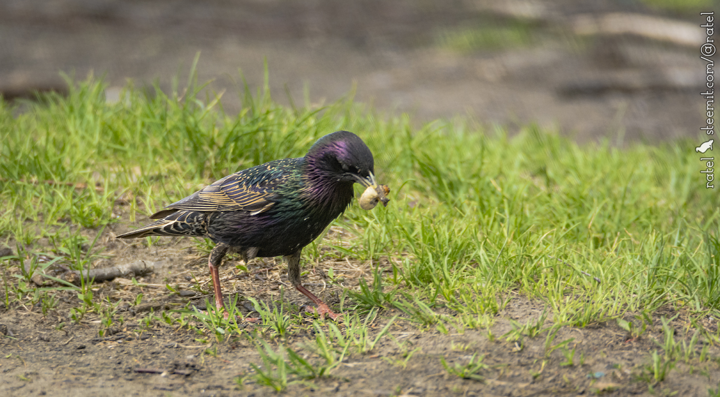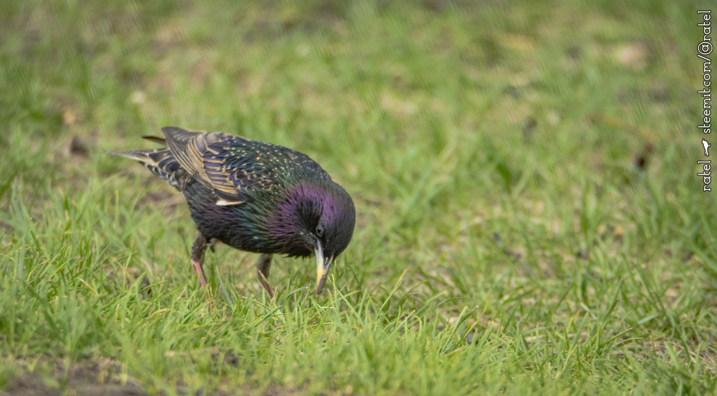 In these photos, this starling, not noticing me, wandered the earth and looked for food.