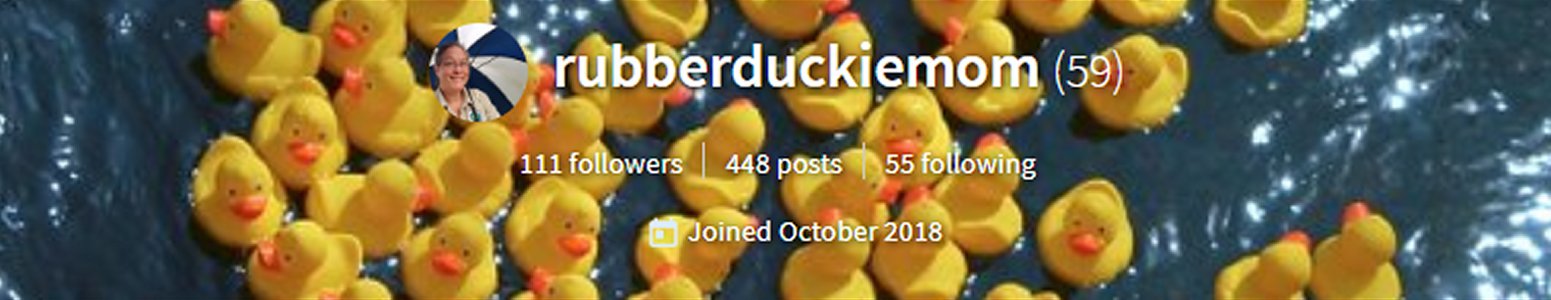 @rubberduckiemom is Ren, of @xcountytravelers fame. She is one of the most upbeat people on the blockchain, always spreading cheer and positive energy to everyone. She and her husband, Scott, are the founders of the @heyhaveyamet project, which welcomes new Steemians who use the #introduceyourself tag. It was Ren who conceived the idea for @steemterminal to help orient new Steemians to the blockchain and help them find communities where they can learn and grow. She loves to travel, enjoys camping, and does some excellent needlework as a pastime. She has a very creative mind that never seems to stop working in devising new ideas and projects. We wish a very Happy Birthday to this wonderful lady! 💖