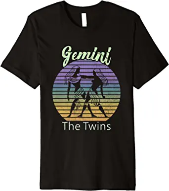 Gemini Birthday Gift--Cool Retro Sunset Zodiac Sign Premium T-Shirt
