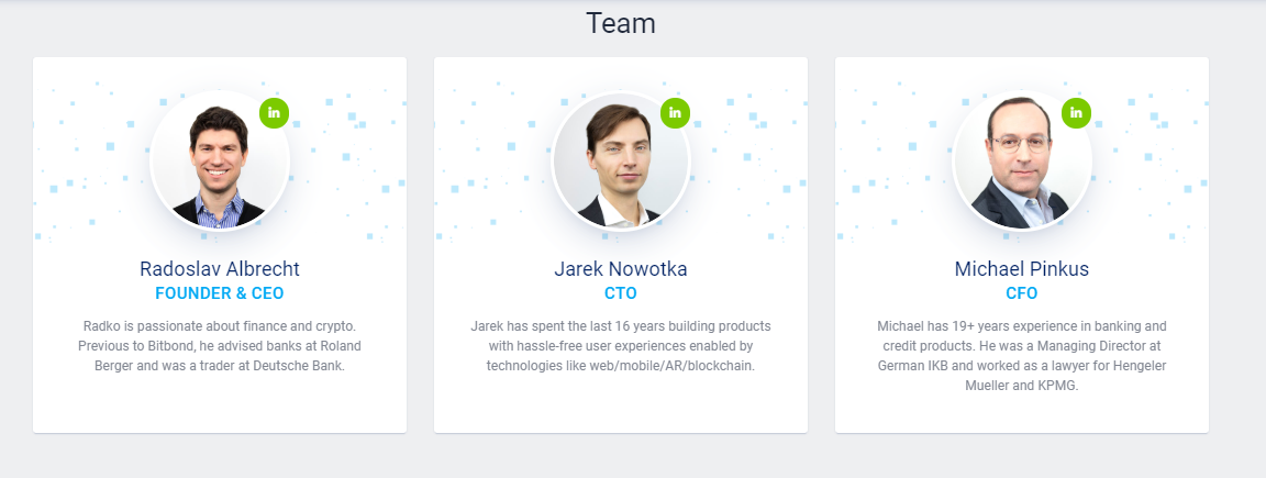 Bitbond platformu finans, blockchain, bankacılık sektöründe yeterli deneyime sahip kişilerin oluşturduğu projedir. Kurucusu; Radoslav Albrecht dir. Diğer ekip üyeleri aşağıda yer almaktadır.
