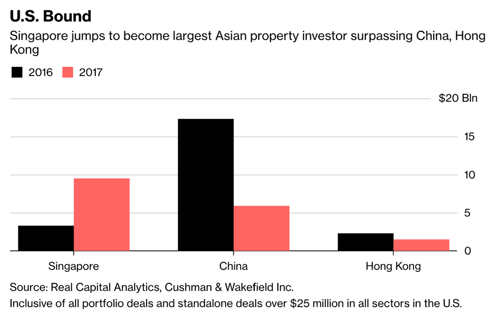 Сингапурцы входят в число крупнейших групп иностранных инвесторов на рынке недвижимости США. Китайские иностранные инвесторы имеют более 28 миллиардов долларов США в сфере недвижимости США.