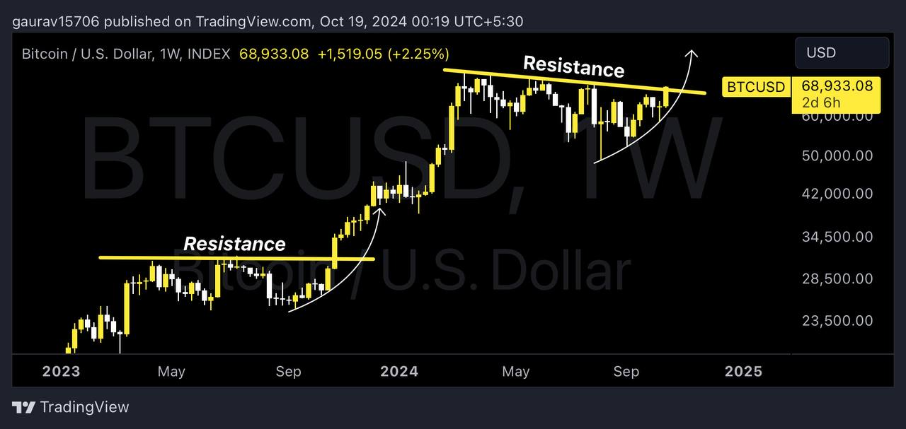 Good evening to all my friends. I hope you all are doing well. I am having a good day. Just came home after attending reception of my friend. Btw let's talk about crypto market. Bitcoin is trading above 68k and that's good sign. Today, we're discussing some interesting insights about the cryptocurrency market, specifically focusing on whether we have entered the final wave of a bull market. Over the past year, we've seen Bitcoin experience a remarkable rally, peaking at over $74,000. This pre-halving rally isn't new, it often happens before major market shifts. We'll analyze key parameters to determine if we're indeed in this final wave where unexpected gains can be captured, especially in altcoins.