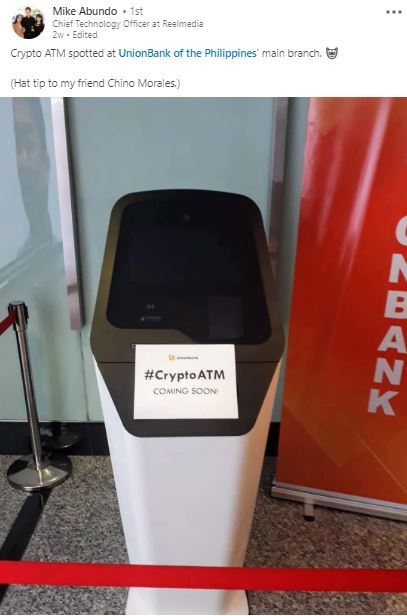 This writer had first seen the Crypto ATM via a photo shared by Mr. Mike Abundo, Chief Technology Officer at Reelmedia.