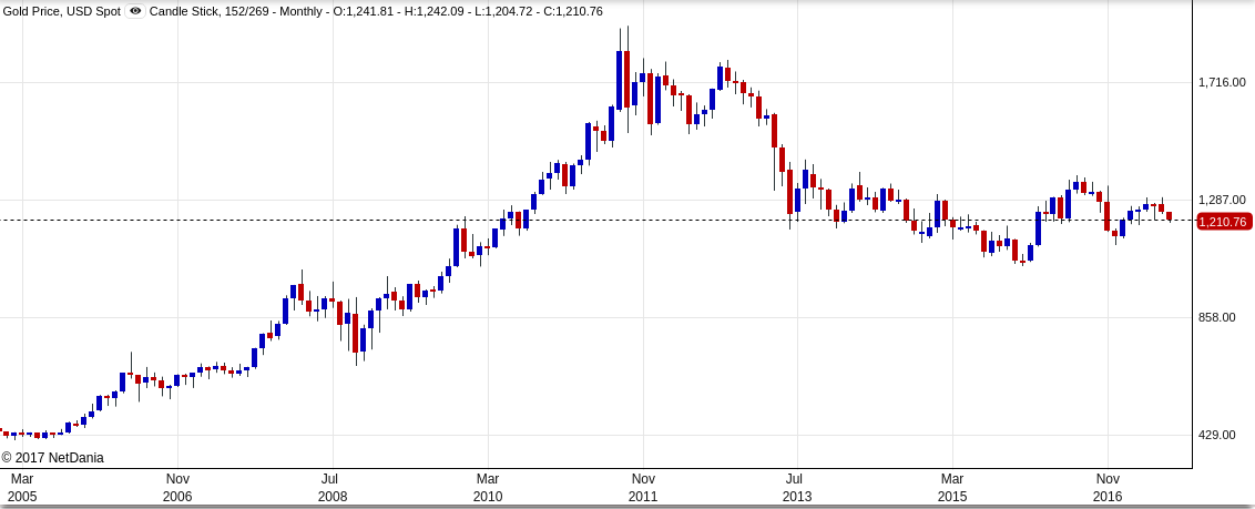 Supplies are limited, everybody wants gold to craft jewellery and it’s a safe-haven currency. Here is gold price on 10 years…