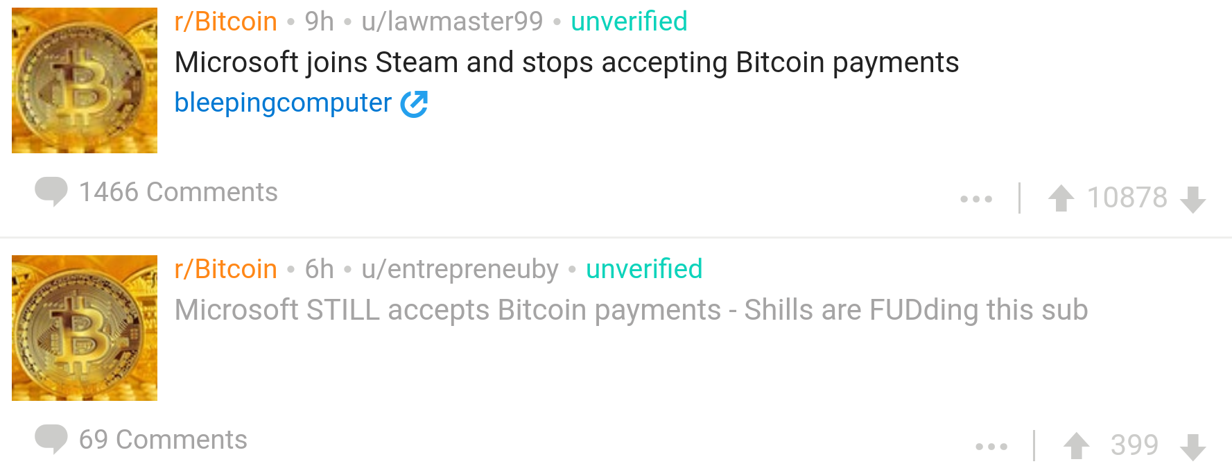 In the meantime on the highly censured subreddit r/bitcoin it seems like moderators have stopped trying to figure out what fake news is and what isn't: