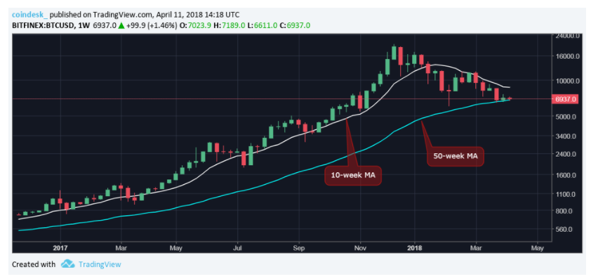 For the third week in a row, the 50-week moving average is always below the Bitcoin price. With a base price of $ 6,500, Bitcoin may soon test the $ 7,500 resistance level .