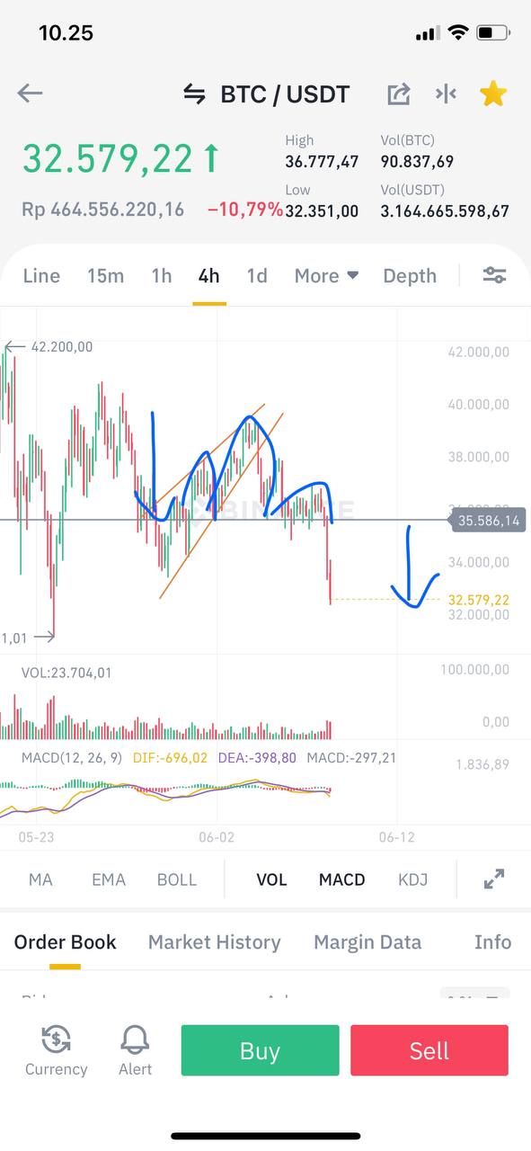 If the level of $32,000 is broken, then the next support level is in the area of $28,500