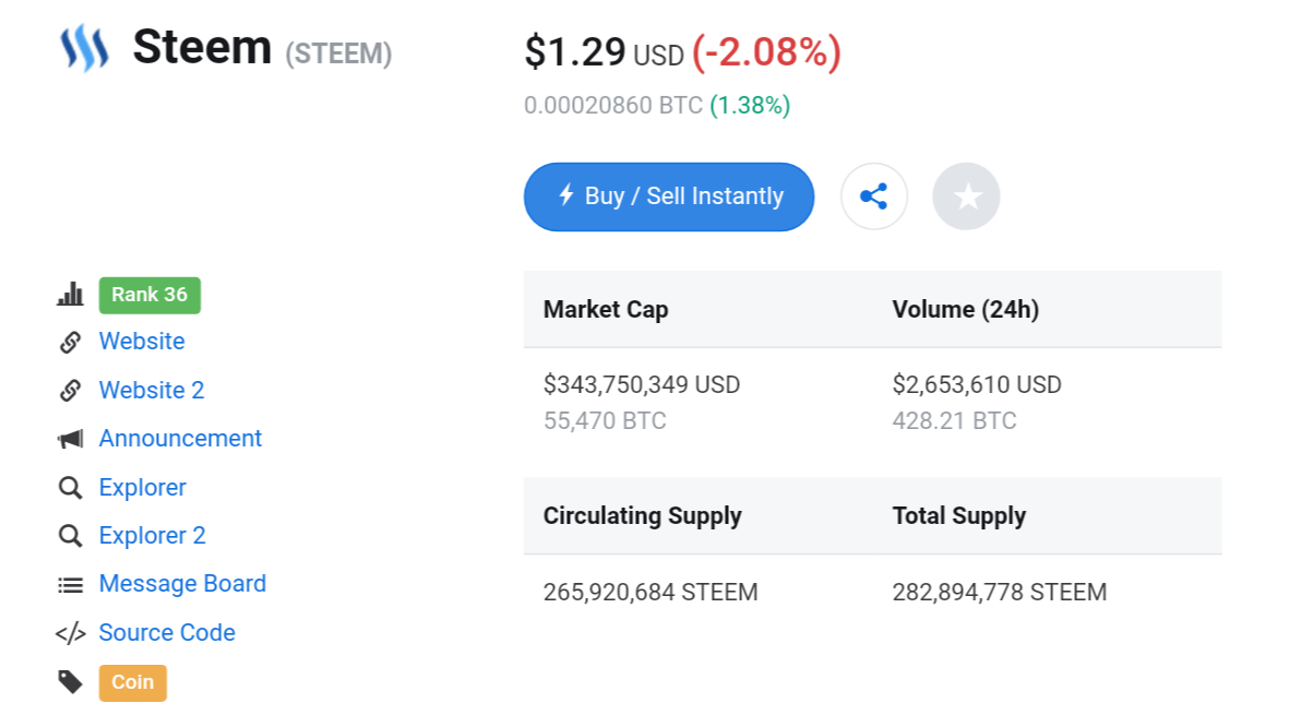 STEEM AND STEEM DOLLER PRICE ON COIN MARKET CAP
