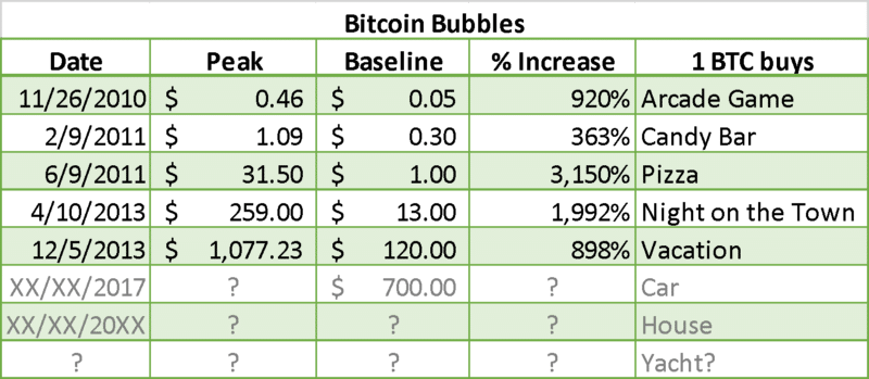 Conteo de las burbujas de Bitcoin hasta 2016. Fuente: Michael Casey