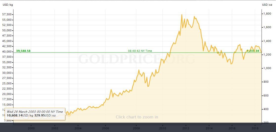 On that month, the cost of Gold was drifting around $330. After eight years, on August 29th, 2011, the cost of Gold was at $1,788 per ounce: an augmentation of 442%. The 2011 cost is 5.41 times that of 2003.