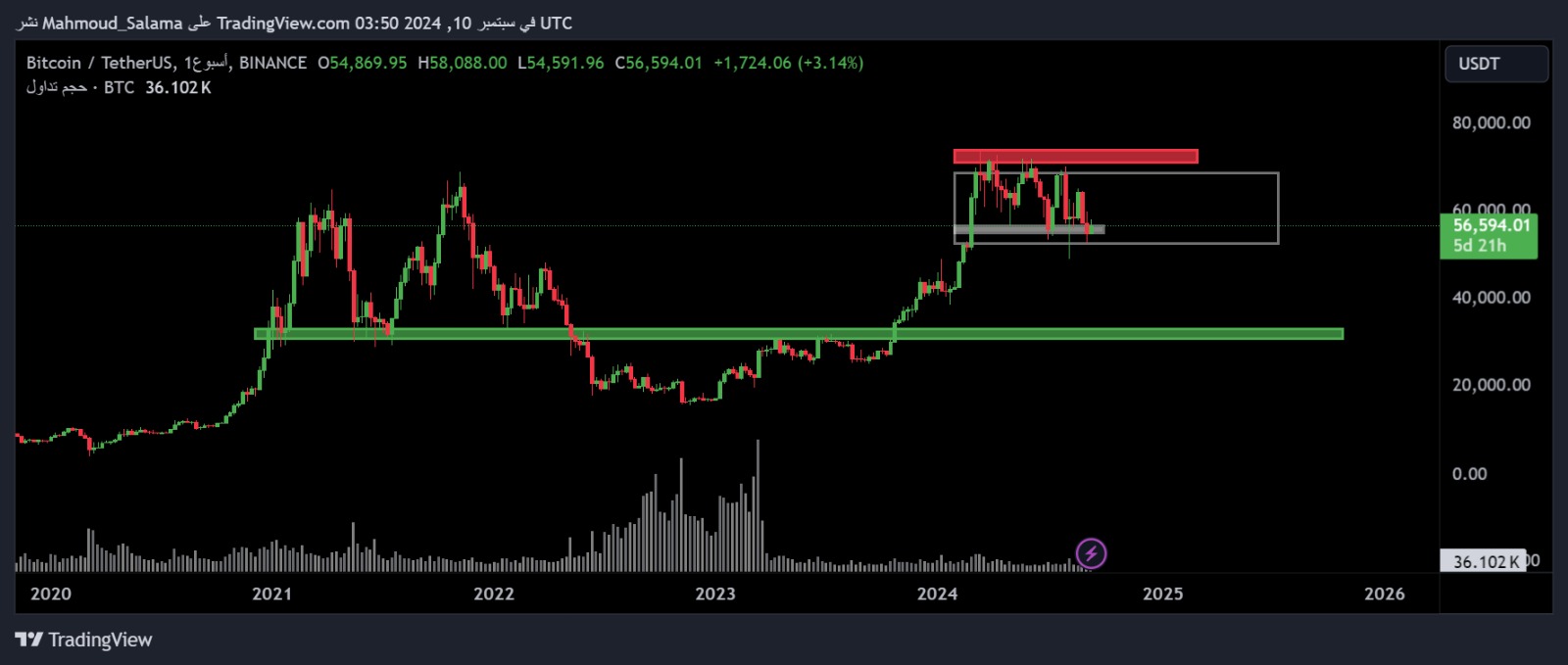 중기적으로는 비트코인이 수평 추세 채널을 따라 움직이며, 이는 투자자들의 불확실성과 신중한 접근을 나타냅니다. 암호화폐는 $52,548의 지지선과 $68,655의 저항선 사이에서 변동하고 있습니다. 최근 $57,000 지지선 하락은 추가 하락 가능성을 암시합니다. 거래량 역학이 가격 변동에 여전히 중요한 역할을 하며, 가격 저점에서의 높은 거래량이 약세 심리를 강화시킵니다. 중기적인 기술적 평가는 부정적인 경향을 보입니다.