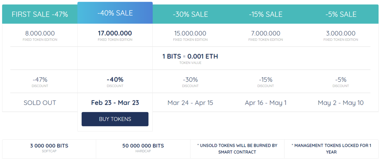 Penjualan awal ICO dimulai pada 22 Januari 2018 dengan bonus 47% untuk investor