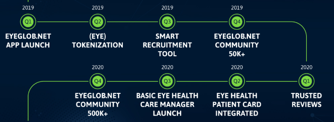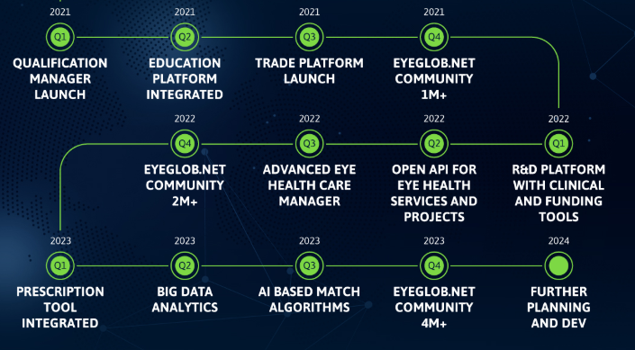 Eyglob möchte ein Ökosystem schaffen, das aus professionellen und sozialen Netzwerken besteht, die für die persönliche Augenpflege für alle genutzt werden. Geheime und intellektuelle Verträge werden die Verwaltung von Daten über Verträge und Gesundheit ermöglichen.