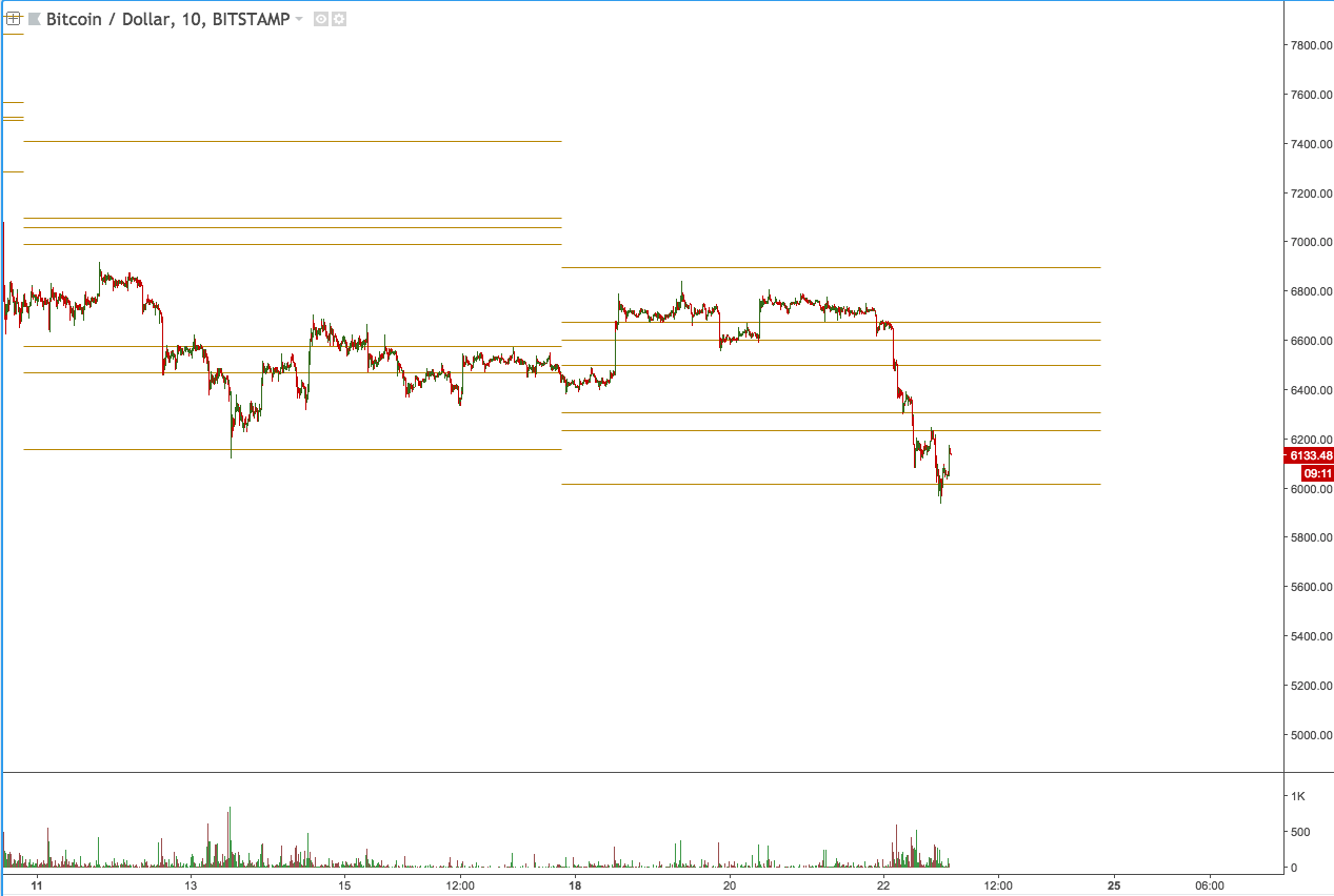 Right when I thought that the Price of Bitcoin might stable down a Bit we see yet another Massive sell-off which led to this Downtrend. The Price of Bitcoin went down from around 6700 USD to 6100 USD in a matter of Hours.