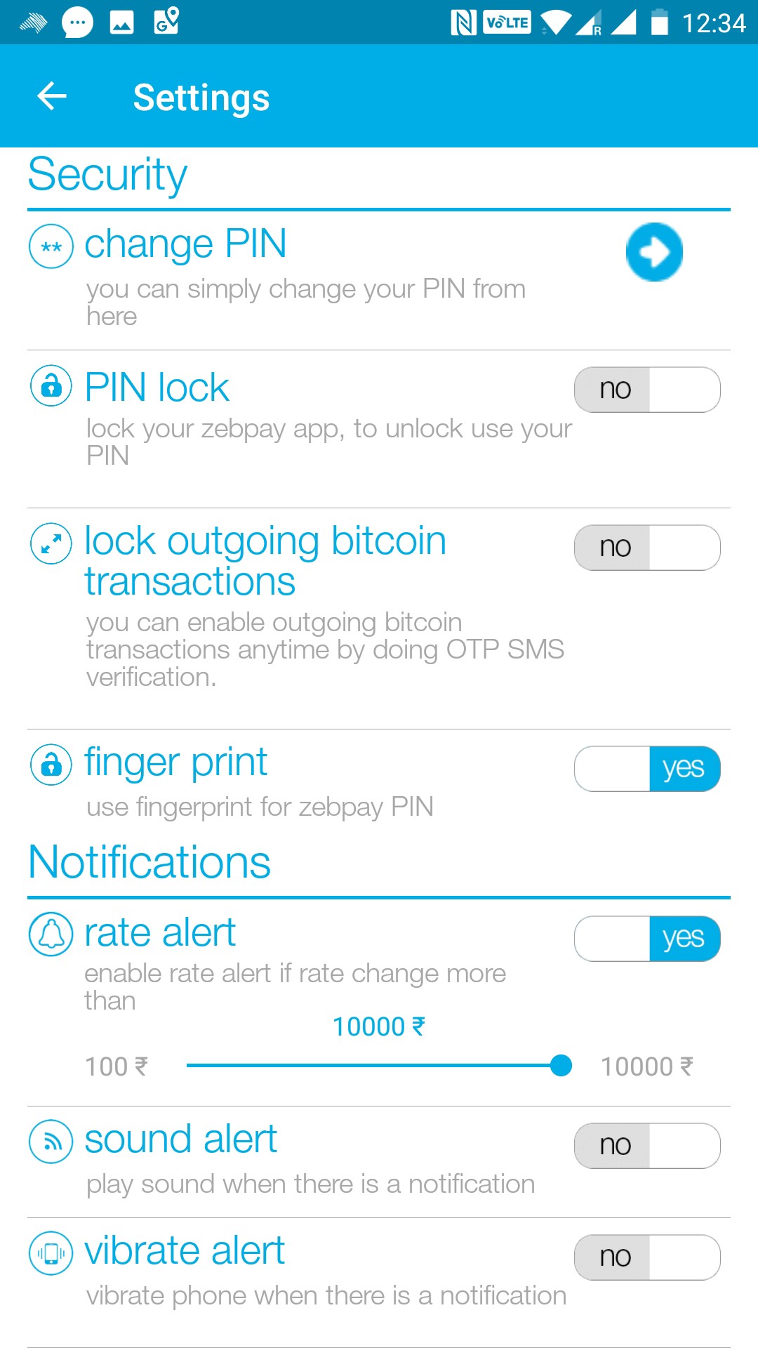 In Zebpay, there is provision for SMS verification for all withdrawal transactions.