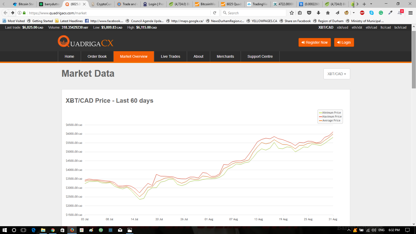 BitcoinWisdom Chart graphing the Canadian Exchange - Quadriga CX as I usually refer to in my updates.