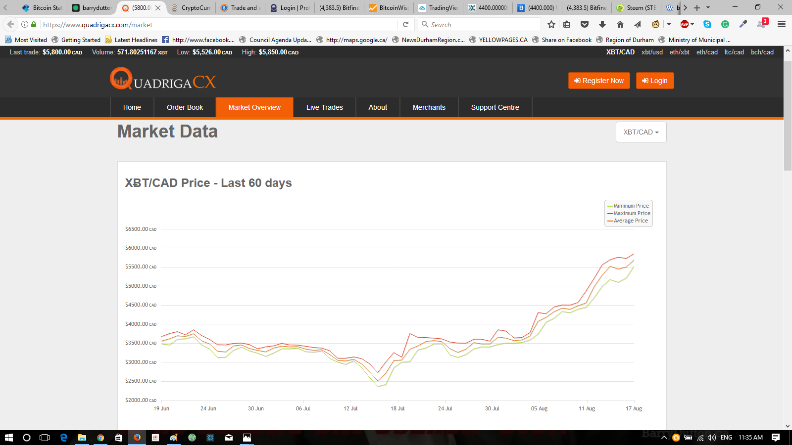 Bitcoin in Canada $5850 mark! Still Rising! Gains $230 overnight! | $4490 USD! | $145B Crypto Market Cap! New ATH's! | Perspective and Optimism in this Post as always. | 8-17-2017 | Charts, Overview.