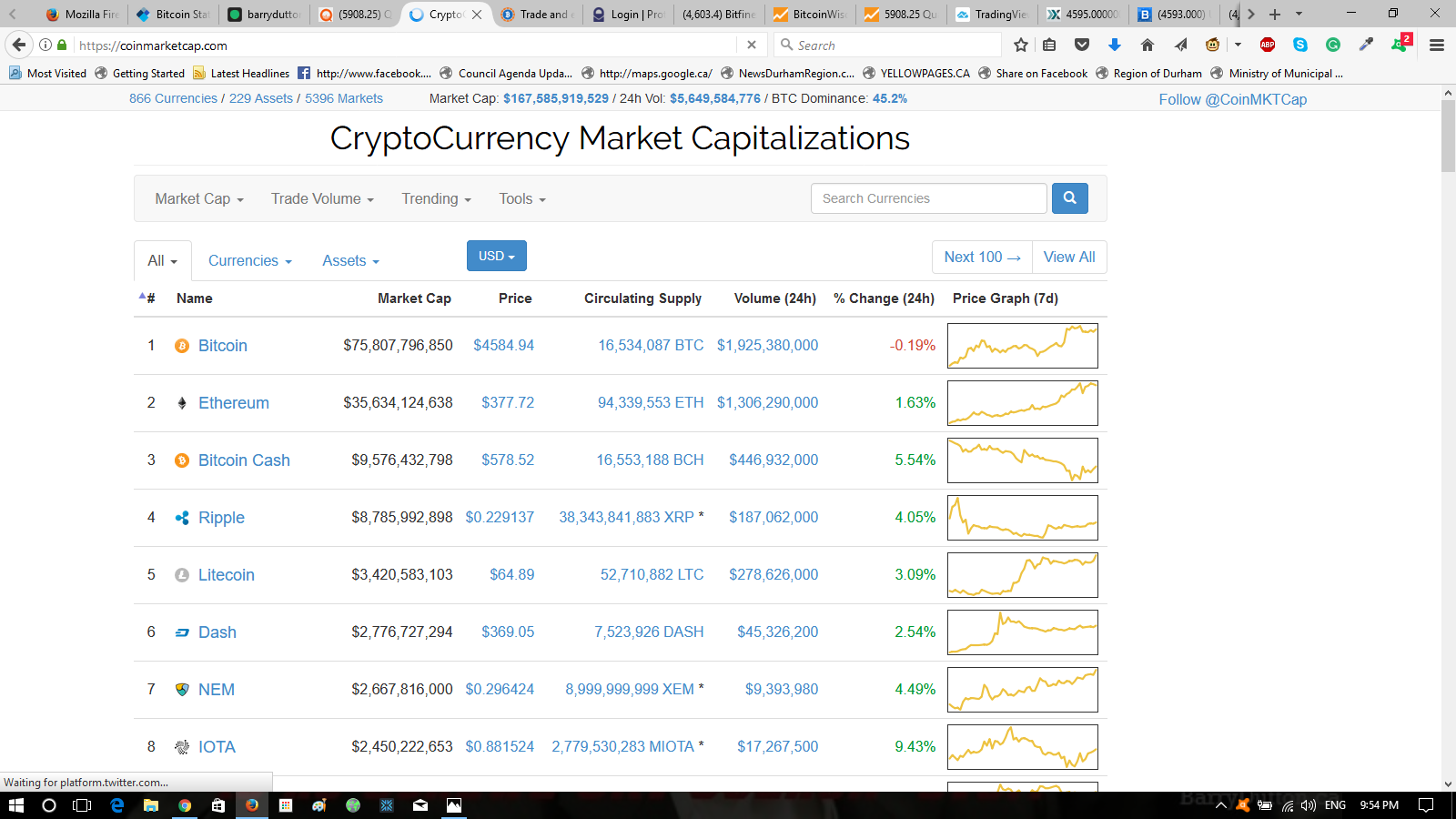 Here is the chart showing it crossing the $3k $CAD mark finally, on 5/22/2017 somewhere around the 8 am mark EST: