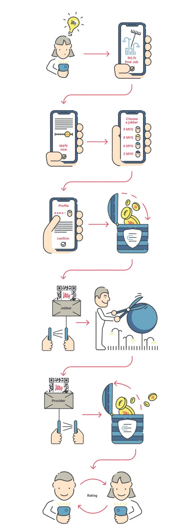 For this reason, Mycro will create a balance between time and money. Mycro will also build a global and decent peer-to-peer network for simple jobs. where people all over the world must choose what they do, when and for whom they work and how much time they are.