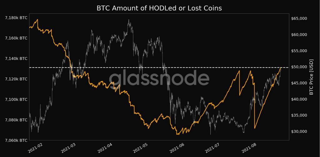 Bitcoin has struggled to break past the $50,000 resistance mark, having managed to climb to $48,000. Not only did the month of August prove to be the highest level in the past five months for potentially lost or long-term holders, the surge in exchange outflows of bitcoin has proved favorable for the price of the crypto. Bitcoin has climbed over 19% in August alone. While the price has climbed more than 65% in the past 31 days alone.