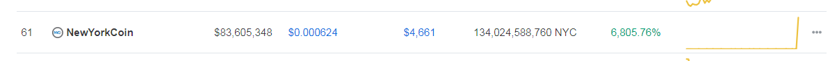 I did a quick search on my two favorite exchanges, Kucoin and Bittrex and did not find a listing for NYC. I can understand that big risks deserve big payouts but sometimes you need to stick with what you know.