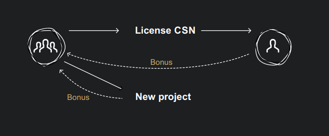 A franchise system is used to develop a network of representatives. For the right to be obtained, the project creates a CSN Lab in regions. Training and purchasing a license is important. A license enables creating a team of experts and prepares new startups for marketing before the tokens or coins are released. The platform is implemented for the likelihood of a bonus program for the sale of licenses and to attract promising and viable startups.