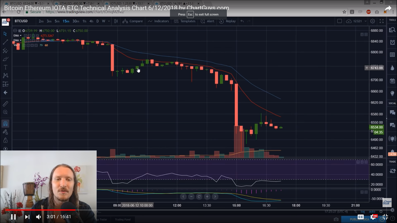 As said BTC revisited the downtrendline and even broke it to the downside, showing the massive selling pressure in the market. Marshall expects BTC to revisit the $6k bottom, but doubt that it will hold, as it's very weak support. Keep an eye on the selling volume.
