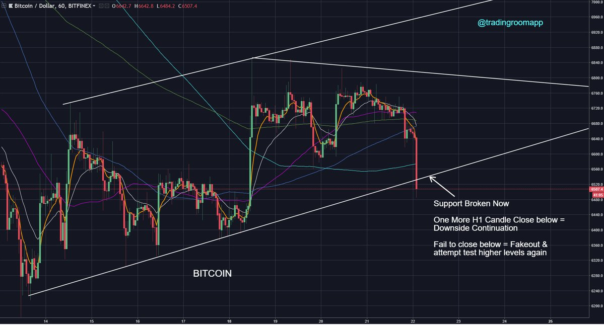 BTC is following expected path so far. We need a confirmation candle for downside to continue. If not we are back to extremely boring range.