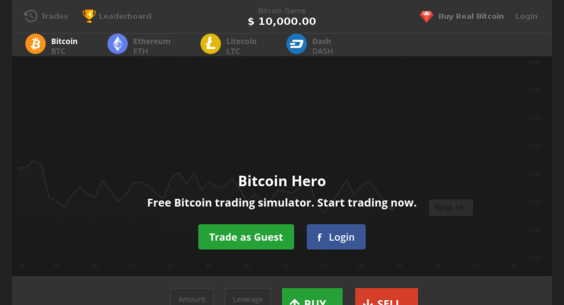 BitcoinHero is a Bitcoin Game and 100% Free Simulator for everyone who wants to try simplified cryptocurrency trading without any risk. Get best scores on the Bitcoin Game Simulator and post on your social media account the results. Easy and funny way to start trading cryptocurrency without any investment. Train yourself and get better understanding of bitcoin and altcoins price trends.