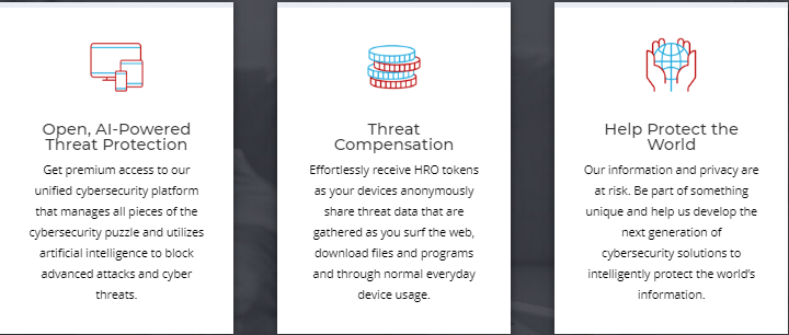 Threat miners receive intelligent threat protection while allowing their devices to anonymously become part of the HEROIC.com Ecosystem. Miners participate by running the threat protection software on their devices and using it in normal everyday activity. Encountered threats seamlessly pass through an anonymity shield to strip any personally identifying information and are then shared to Arc Reactor for the greater good of the community. As threat miners encounter, verify and contribute threats, they receive compensation for their contributions in the form of HRO tokens.